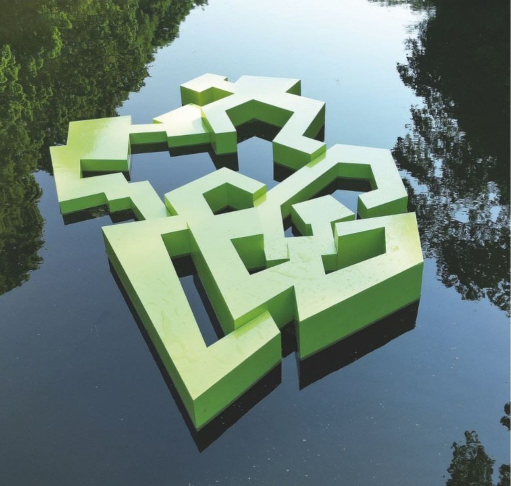 SOFEH bestaat uit 5 elementen die met elkaar zijn verbonden. Elk element, groen als eendenkroos, heeft zijn eigen vorm en dynamiek. Samen vormen ze een drijvend eiland.Het werk speelt met de paradox tussen volume en leegte. De ruimte tussen de vormen is geen leegte. Ze zijn beeldend net zo belangrijk als de elementen zelf. De subtiele hoogteverschillen zorgen voor een spel van vlakken die verspringen en lijnen die botsen. Wanneer het licht langs de zijkanten strijkt worden deze verspringingen intenser.