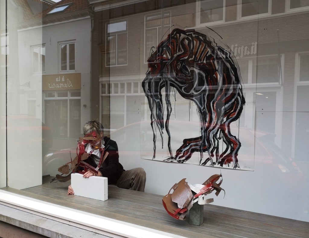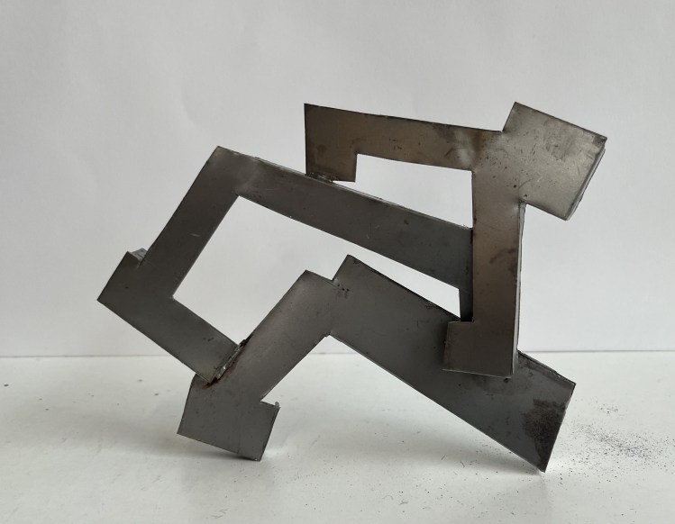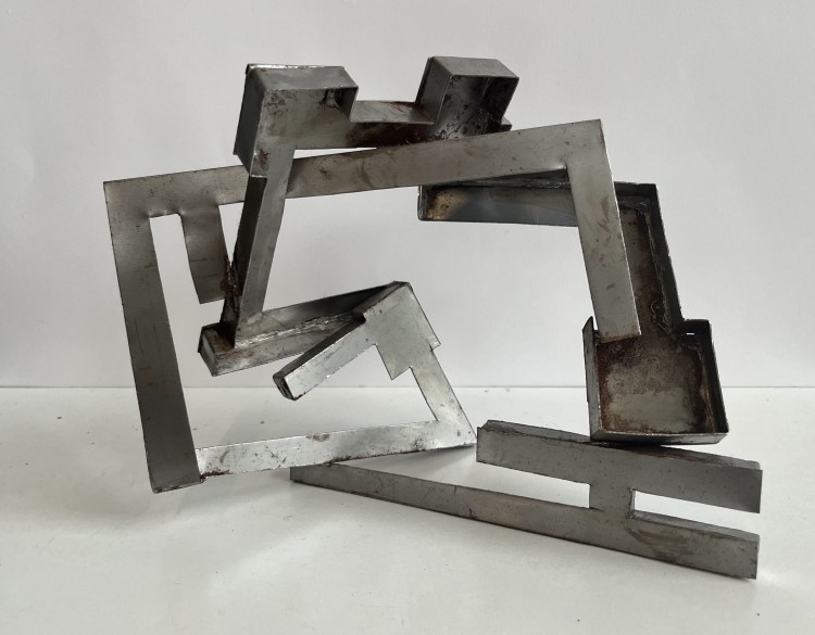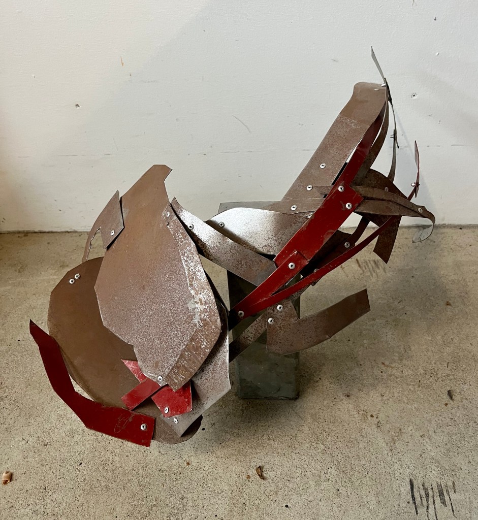Z.T. 2022. Gemengde techniek op paier 140 x 100 cmZ.T 2024, Metaal. 55x27x18cmZ.T 2024, Metaal. 55x27x18cm