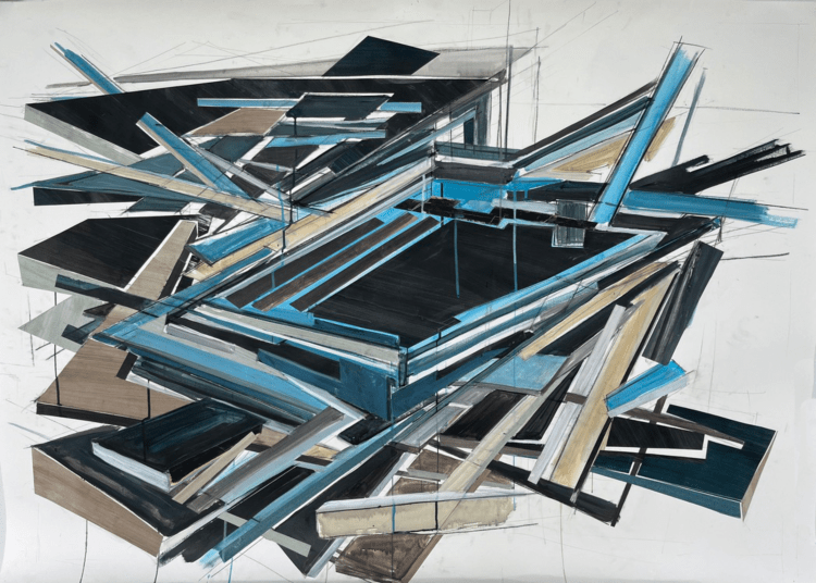 Z.T. 2023. Diverse technieken op papier. 97 x 136 cm