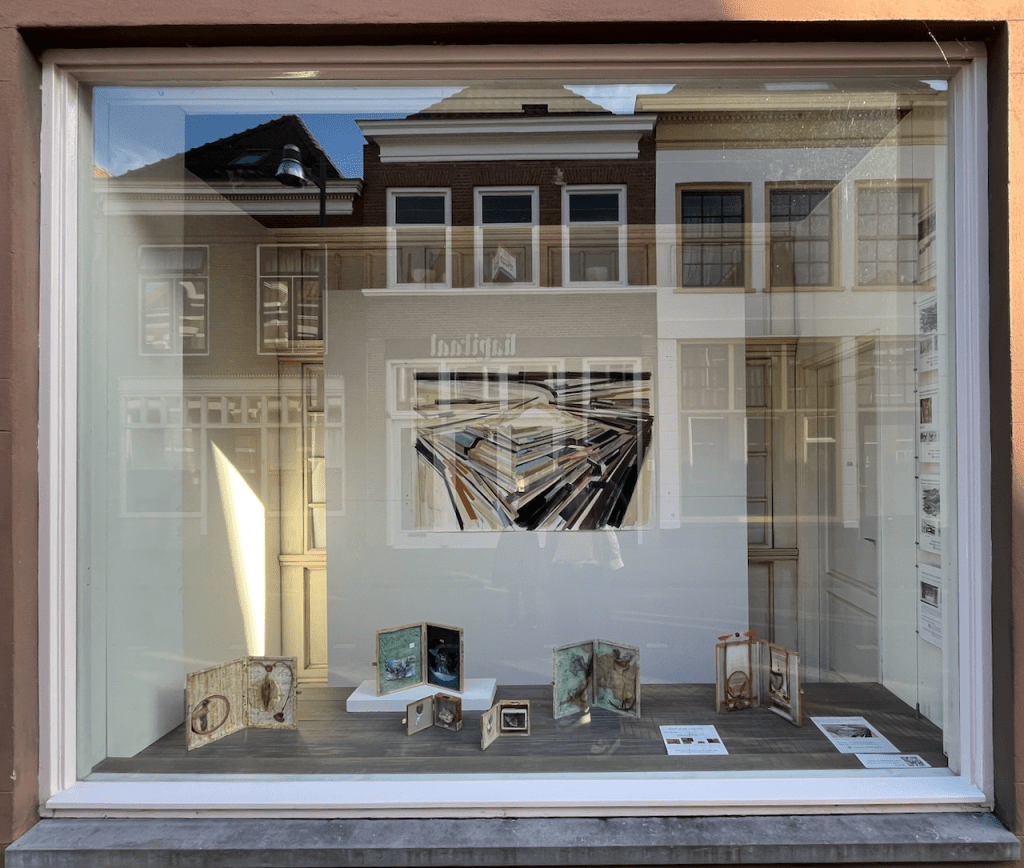 Z.T. 2025, Acryl op papier. 140 x 100 cmZ.T.2025 Hout, acrylverf metaal. 61 x 42 x 8cmZ.T. 2012, div technieken en materialen. 21-38 x 16 x 5cm